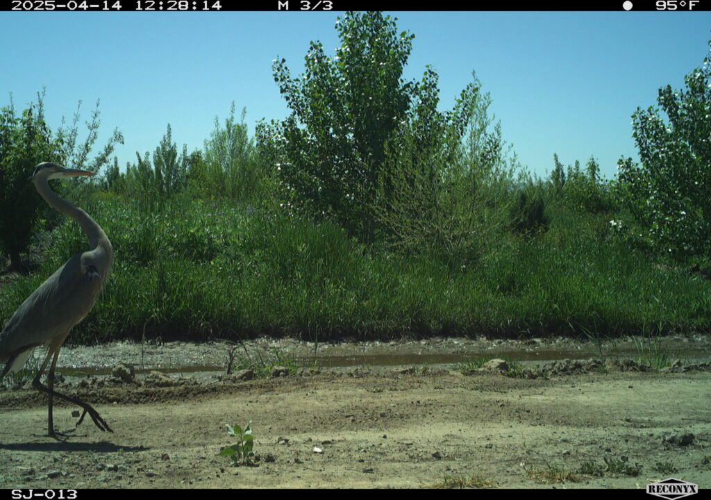While River Partners’ collective strength is in our staff who are in the field every day to bring life back to rivers throughout California, we do like an assist from technology. Our camera traps capture wildlife sightings around the clock, like this one of a great blue heron. This stately bird was strutting around Hidden Valley Ranch, a 350-acre former dairy we restored in 2024 that is a vital puzzle piece in one of the state’s largest contiguous corridors of floodplain habitat.