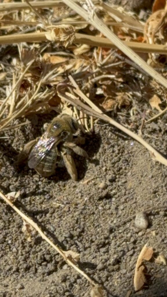 Associate Restoration Scientist Diego Garcia was walking along the banks of the San Joaquin River at the 1,600-acre Dos Rios State Park, our crown jewel restoration in the Central Valley which took over a decade to restore. As he scouted for places to best conduct water monitoring sampling, he came across a sandy area and noticed a few insects that appeared to be burrowing. What he saw was the pallid desert-digger wasp.