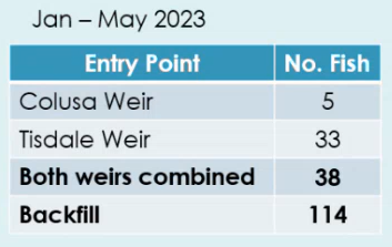 Using JSATS data, the 2023 study found that five JSATS-tagged salmon entered the floodplain via Colusa Weir and 33 more fish entered via Tisdale Weir. Meanwhile, a whopping 114 juvenile salmon entered the floodplain via backfill, a stunning number considering it was believed more fish got there through the weirs.